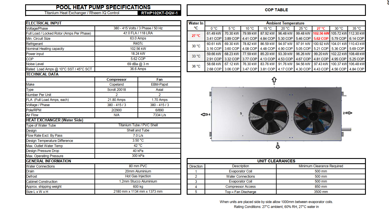 Bơm nhiệt hồ bơi RTHP102KT-DQV-1 là thiết bị sử dụng nhiệt từ môi trường để làm nóng nước. Để bơm nhiệt hoạt động hiệu quả, cần chú ý những điểm sau khi lắp đặt: