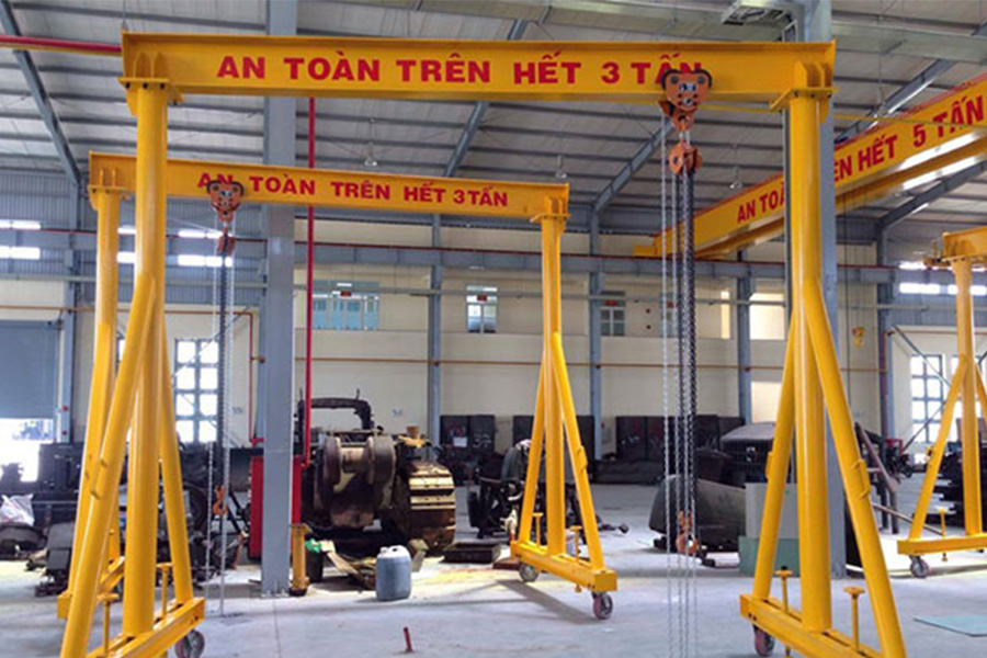 - Loại hình di chuyển: Cổng trục có thể di chuyển trên đường ray dọc theo nhà xưởng (cổng trục dầm đơn/dầm đôi) hoặc di chuyển tự do trong phạm vi nhất định (cổng trục di động). Lựa chọn loại hình di chuyển phù hợp với bố trí nhà xưởng và nhu cầu sử dụng.