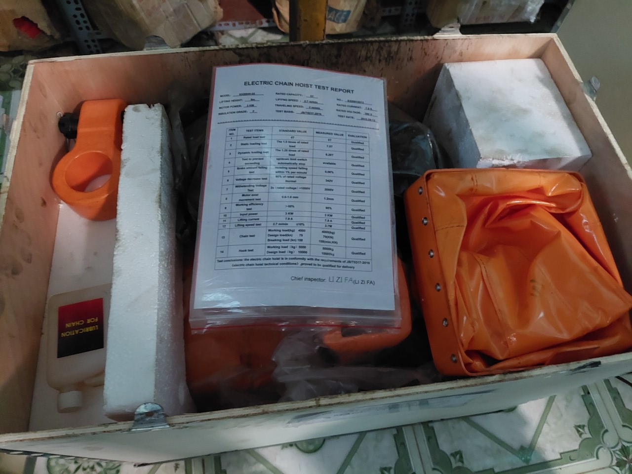 | Stt | Model | Tải trọng nâng | Chiều cao nâng | Tốc độ nâng | Công suất | Điện thế | Số sợi xích | Đường kính xích | Trọng Lượng | |