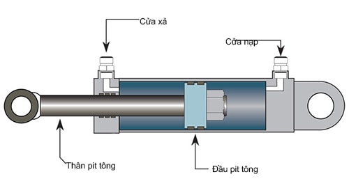 - Áp lực của dầu thủy lực sẽ đẩy pít-tông trong xi lanh di chuyển.