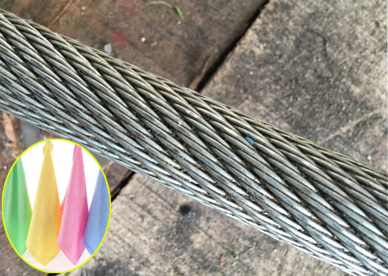 Các bạn sử dụng một miếng giẻ hoặc có thể là vải cotton, di chuyển miếng giẻ từ từ chậm rãi dọc theo cáp tải hàng. Khi sợi cáp bị đứt sẽ dễ dính vào miếng giẻ.
