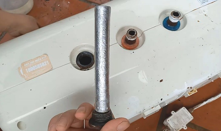 Bước 3: Kiểm tra và tháo thanh Magie nằm ở phía dưới đáy bình, sau đó lắp đặt thanh Magie mới.