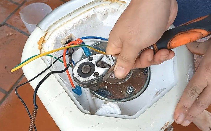 Bước 4: Có thể tháo máy nước nóng để thuận tiện vệ sinh. Trong quá trình này, hãy tháo ốc vít để lấy thanh gia nhiệt và thực hiện sự rửa sạch bên trong bình.